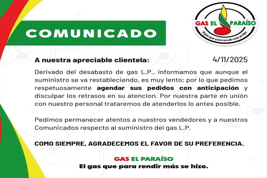 En Zacapoaxtla, la empresa Gas El Paraíso anunció